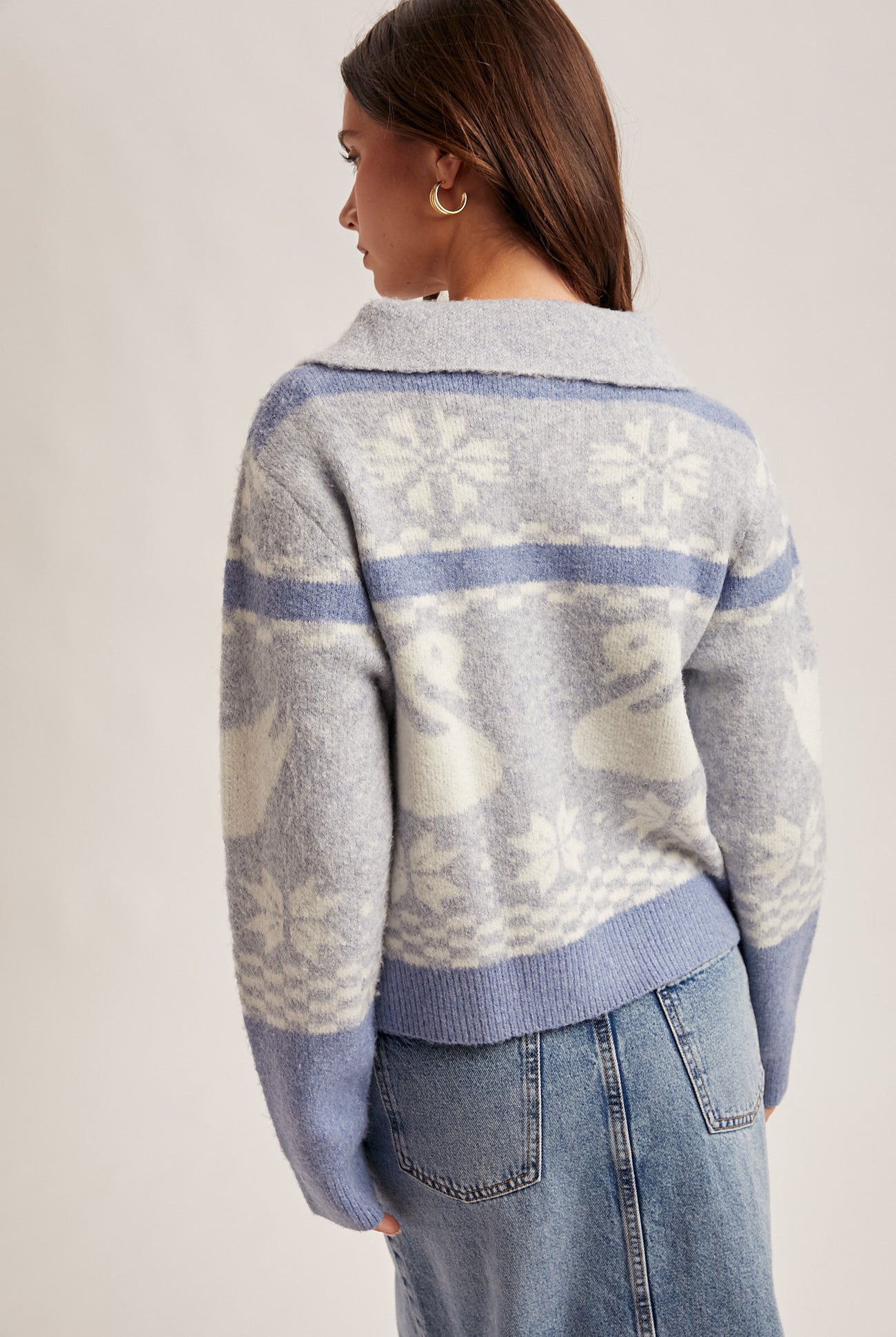 Swan Motif Zip Front Sweater