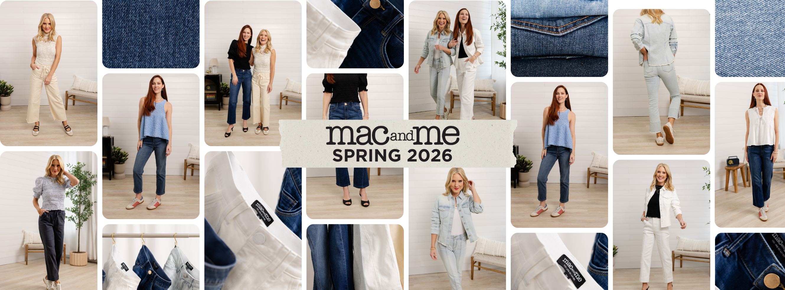 Our exclusive brand, Mac and Me, was created by Mainstream Boutique founder, Marie DeNicola, and inspired by her only daughter, Mac. Designed with love, Mac and Marie create every piece of denim, jewelry, tops, jackets and beyond for women of all generations.