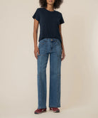 High Rise Straight Leg Jean with Pork Chop Pockets and Seaming Detail