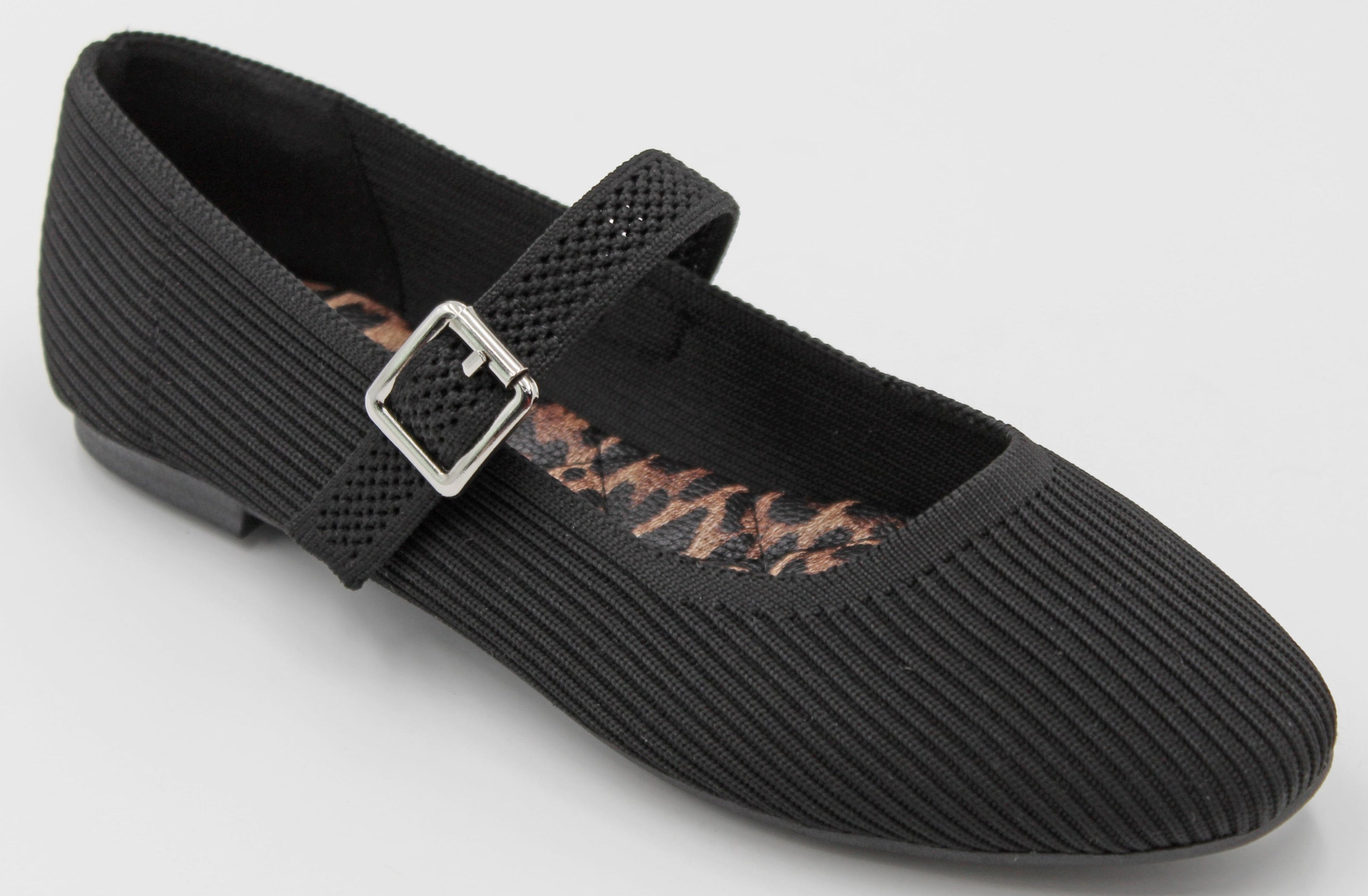 Chic and easy to wear, this knit flat features a soft, flexible design for all-day comfort. The strap with buckle detail adds a polished touch while providing a secure fit. Perfect for pairing with everything from denim to dresses, it’s a versatile staple for effortless everyday style.
