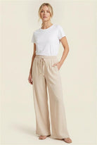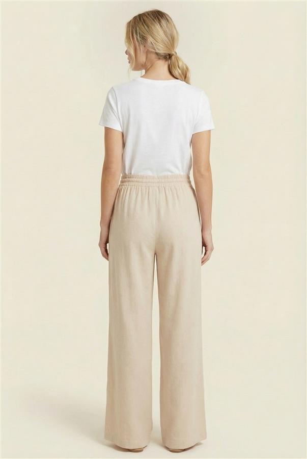 Linen Blend Wide Leg Pant with Elastic Waistband and Pockets