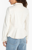The Liverpool Fit and Flare Trucker Jacket offers a fresh, feminine take on a classic denim staple. Designed with a structured bodice and subtle flared hem, it creates a flattering silhouette while maintaining that timeless trucker style. Perfect for layering over dresses or pairing with your favorite denim, this versatile jacket adds polished charm to any look.
