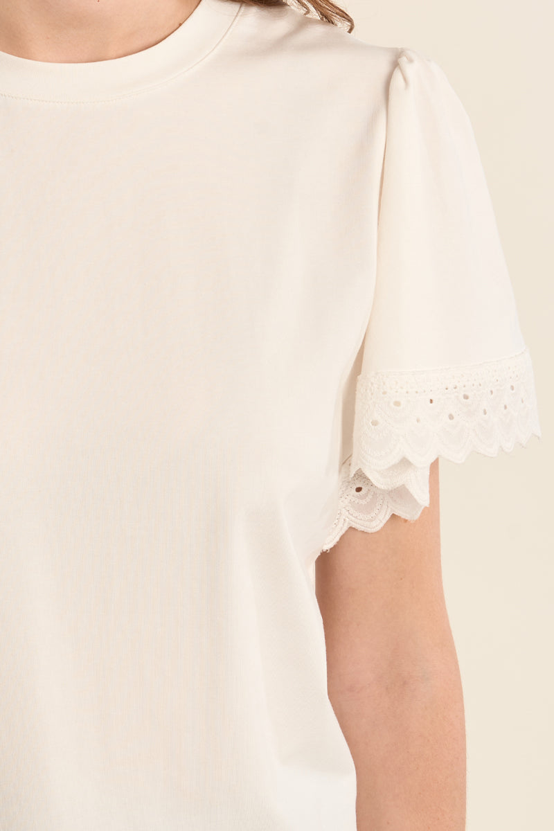 Loose Fit Tee with Lace Sleeve Detail
