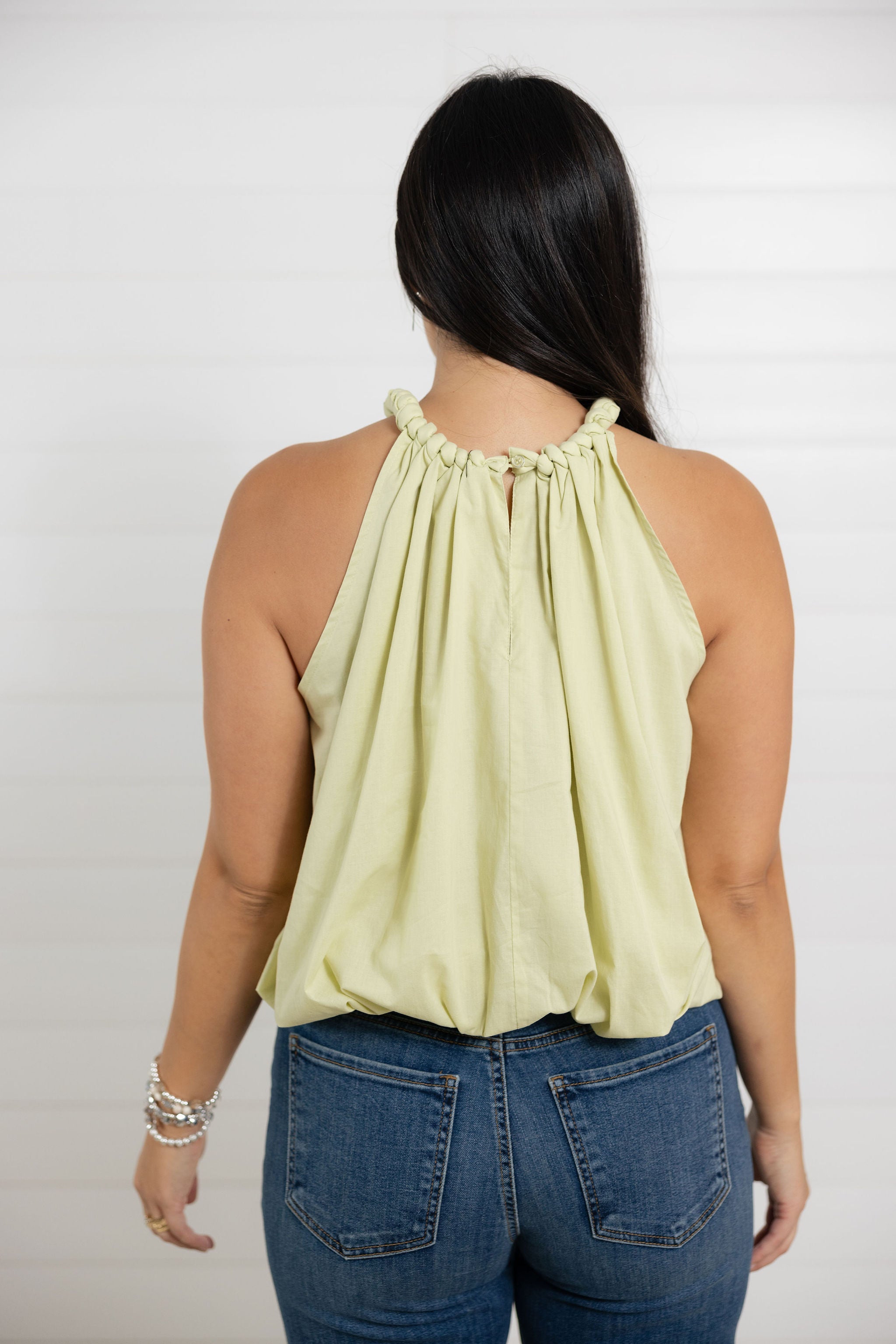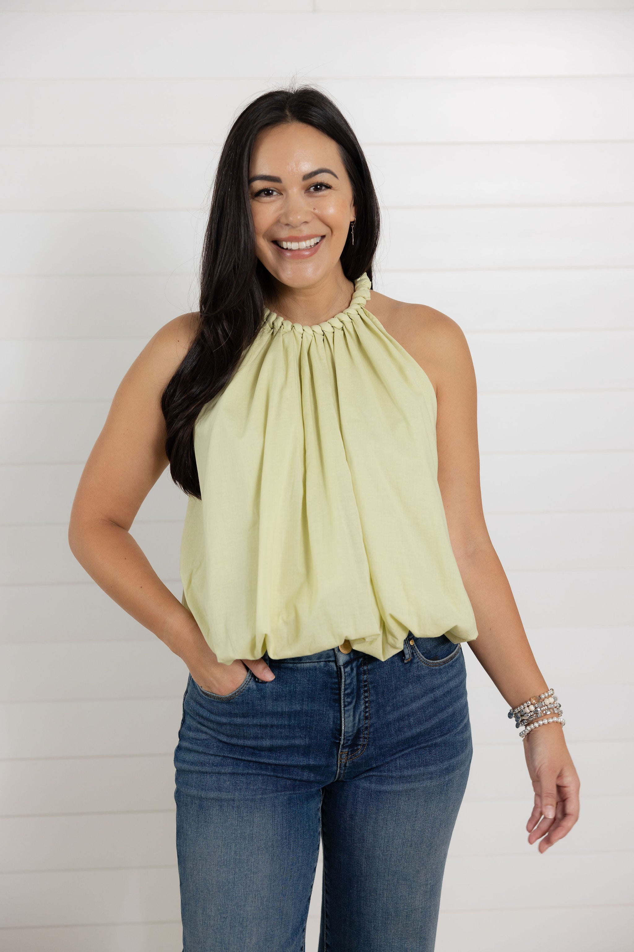 MB Cotton Lined Bubble Hem Blouse with Neckline Detail