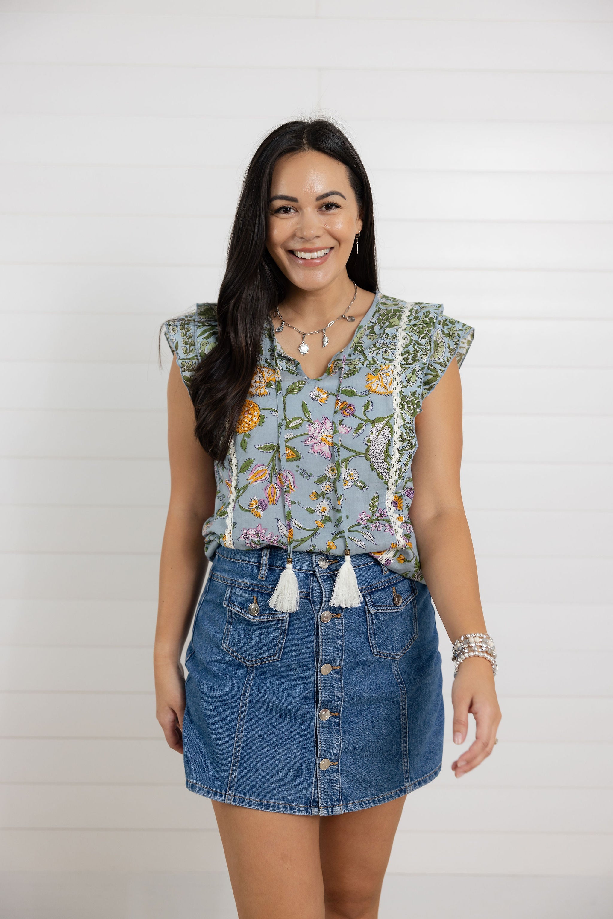 MB cotton blouse featuring a playful mixed print and tie details for a feminine, effortless style. Crafted from soft, breathable cotton for comfortable all-day wear. A versatile piece that pairs beautifully with denim, trousers, or skirts.