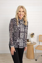 MB Lined Patterned Turtle Neck Top