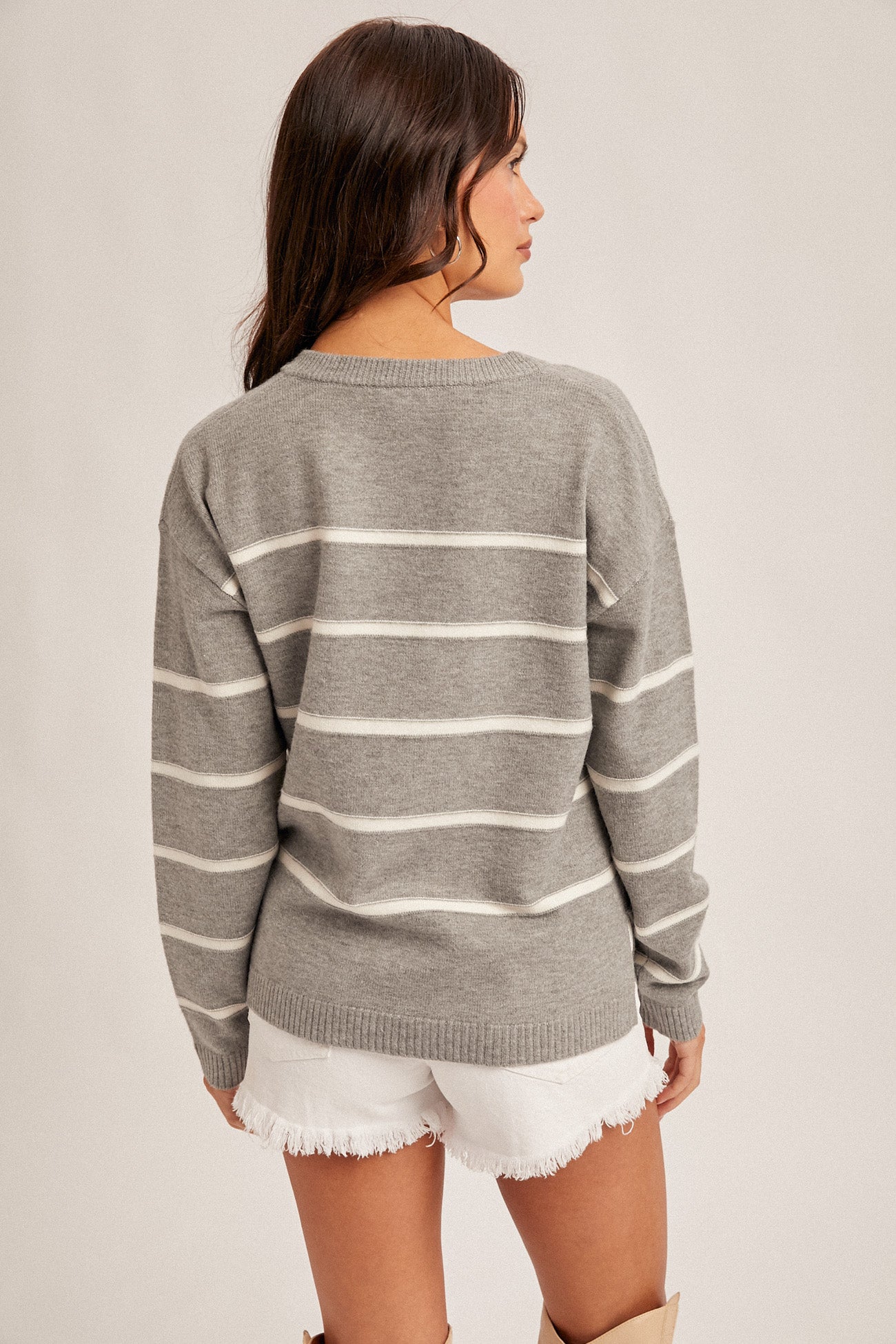 Striped V Neck Sweater with Split Neck Detail