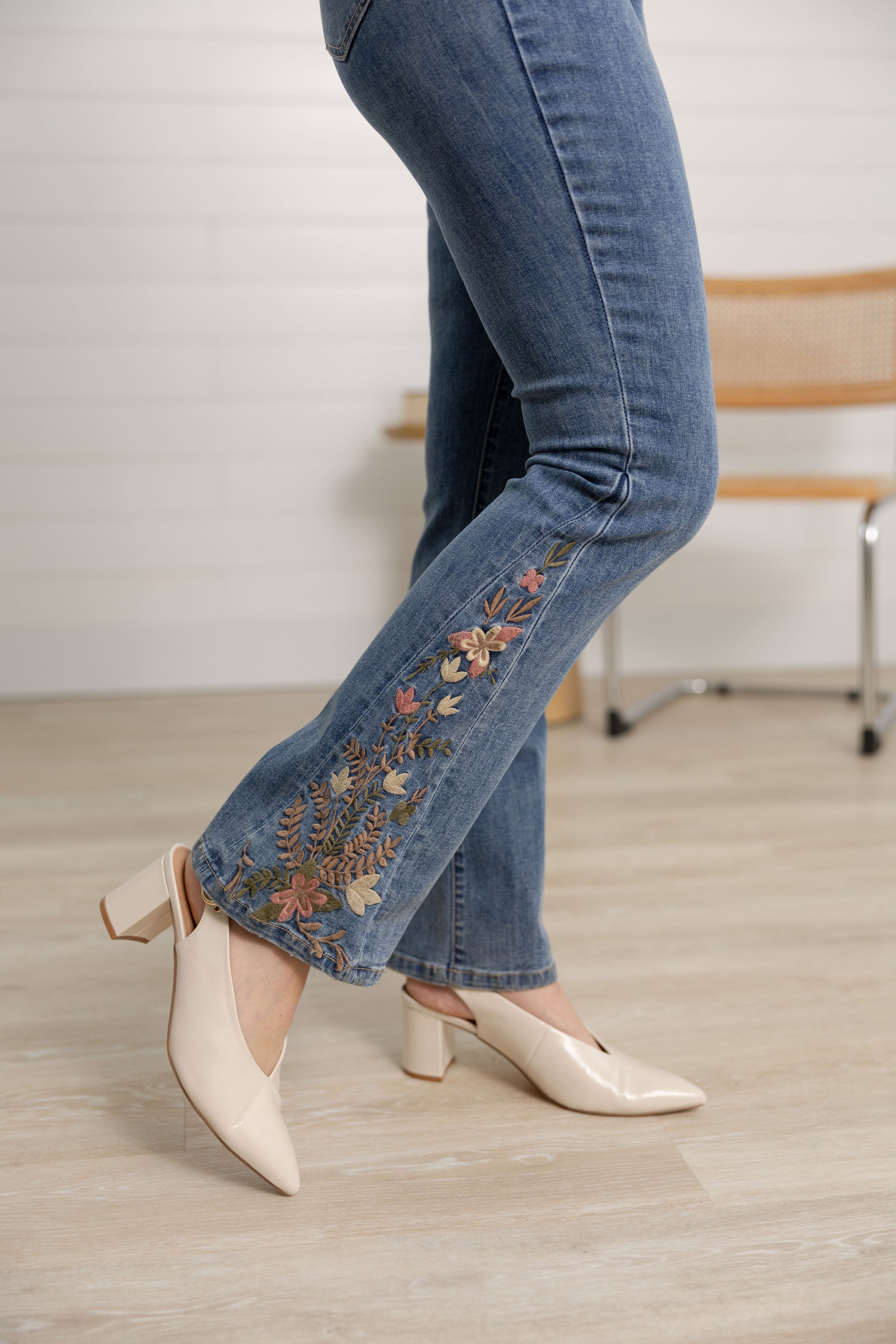 *FINAL SALE* Bootcut Stretch Jean with Side Embroidery Detail