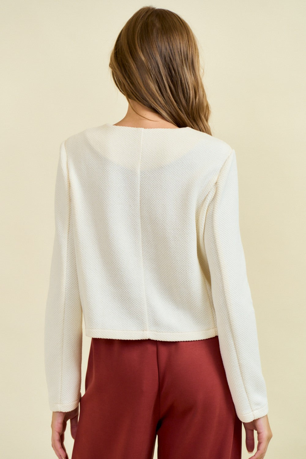 - Elegant lady jacket crafted from textured knit fabric