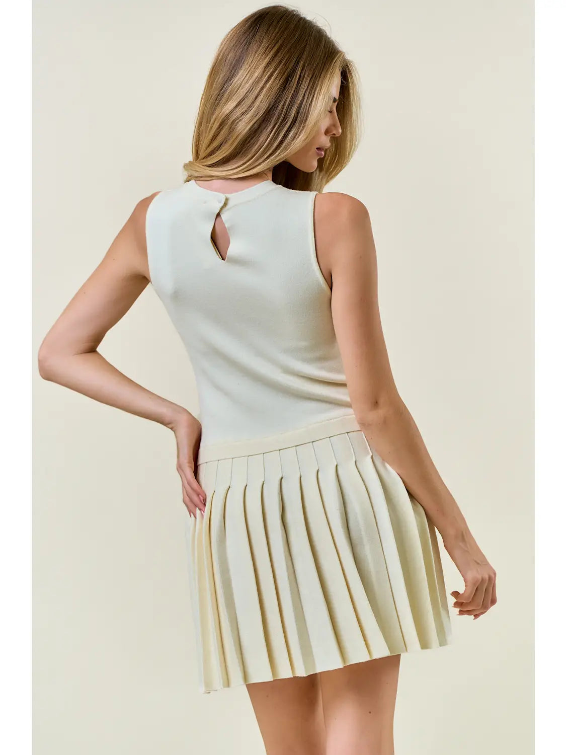 Pleated Knit Mini Dress with Keyhole Back