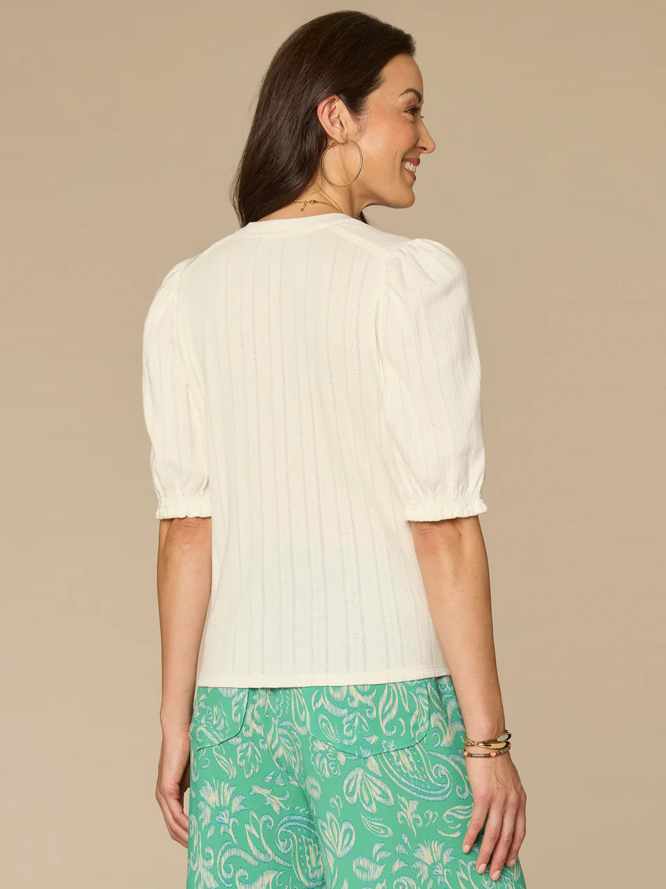 3/4 Puff Sleeve Cotton Top with Notch