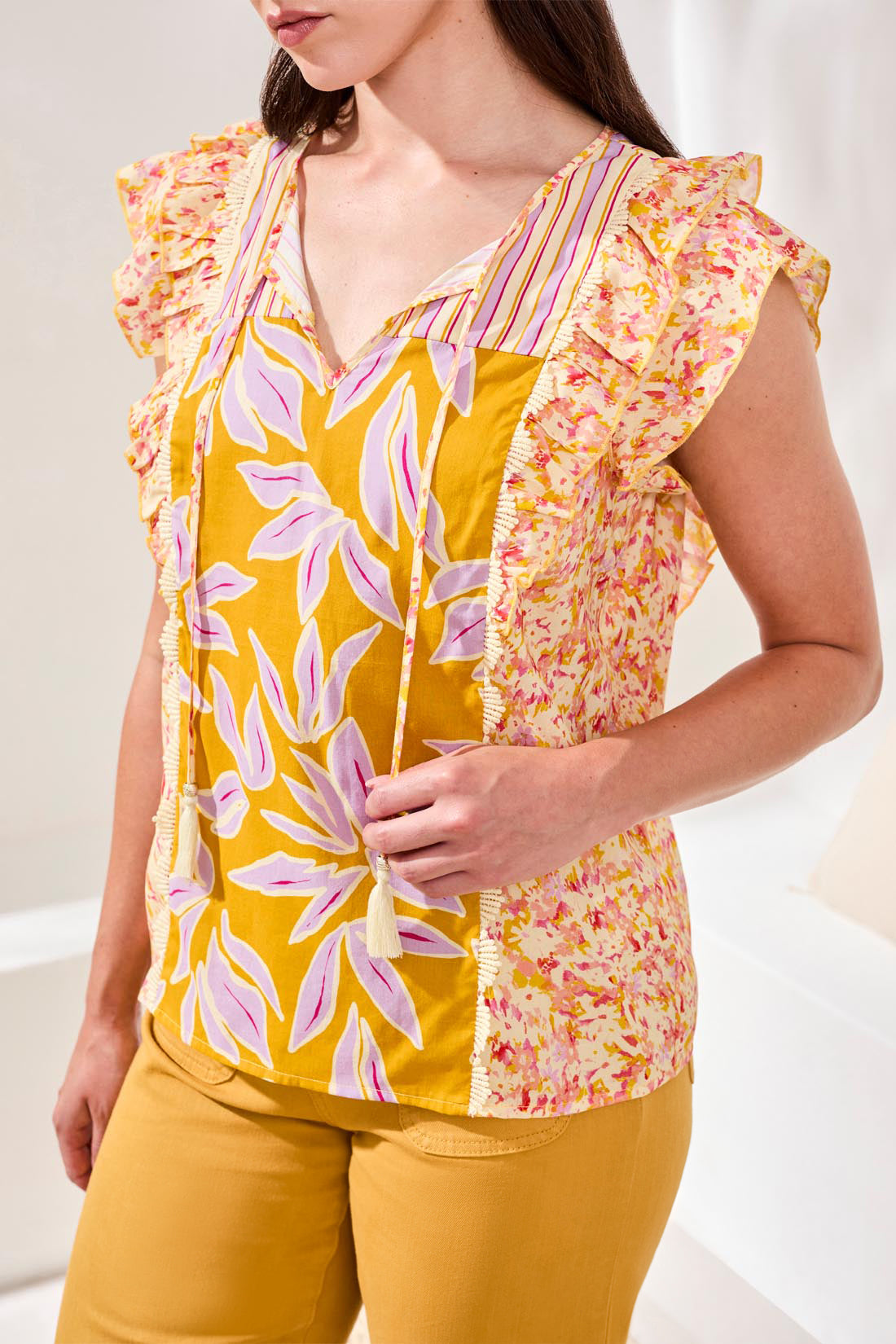 MB Mixed Print Blouse with Front Ties