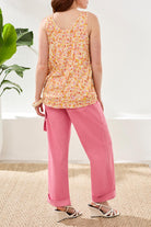 This MB tank is the perfect addition to your suitcase. It gives versatility of a pattern and a solid all in one! Light weight and perfect for summertime or under a jacket for cooler days.