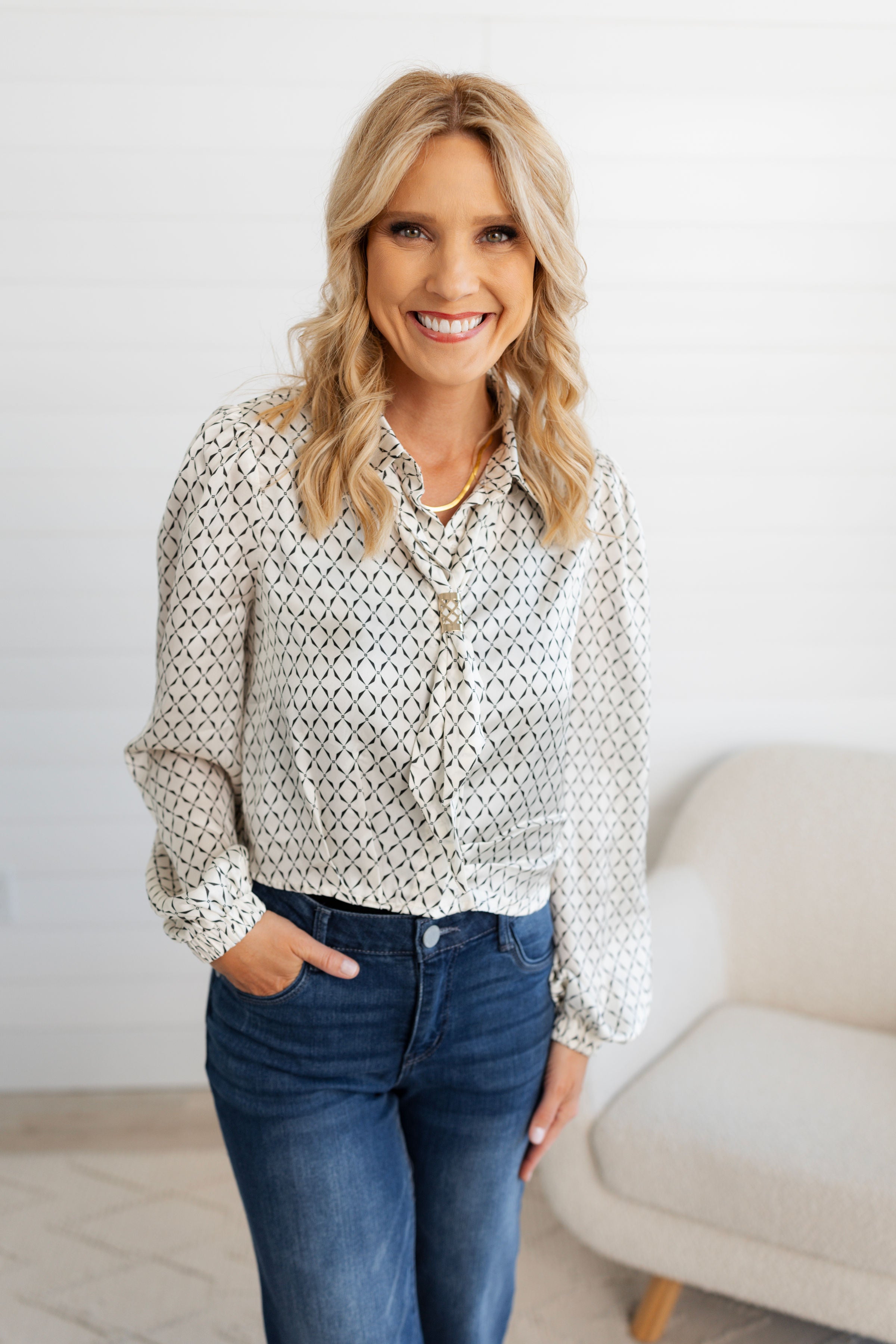 *FINAL SALE* Geo Print Scarf Blouse with Elastic Waistband