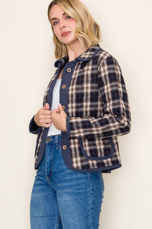*FINAL SALE* Button Front Quilted Plaid Jacket