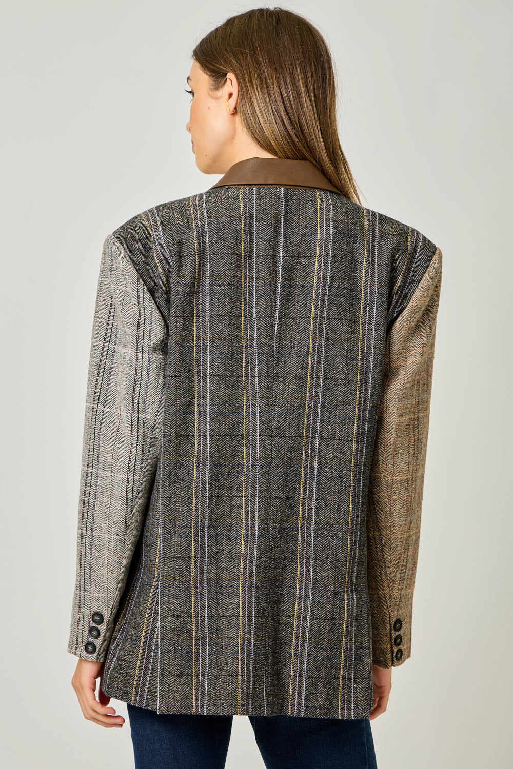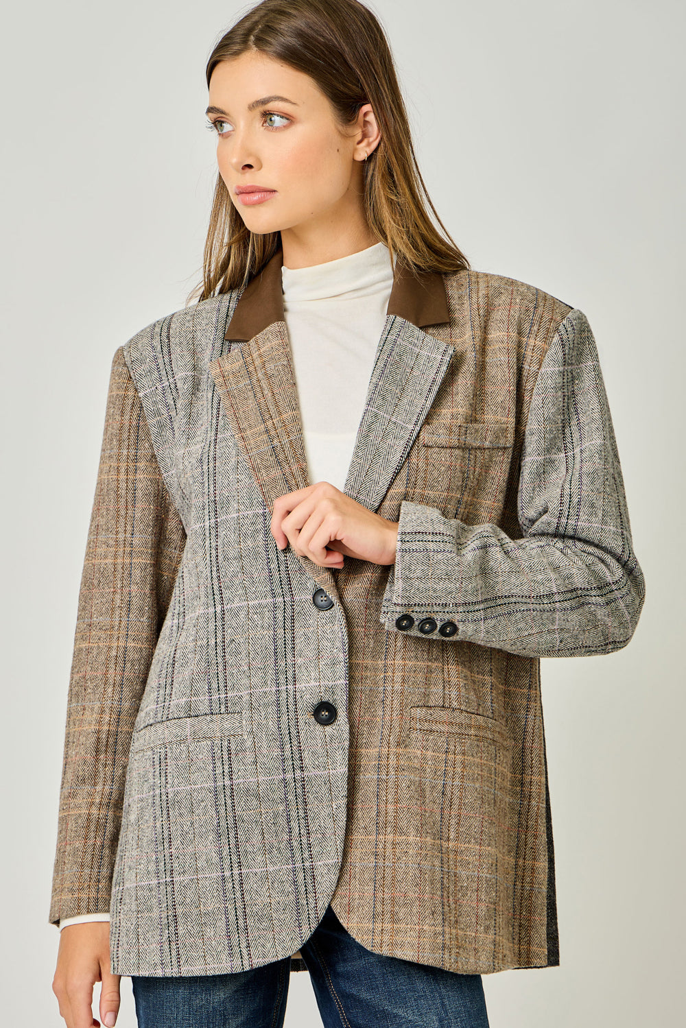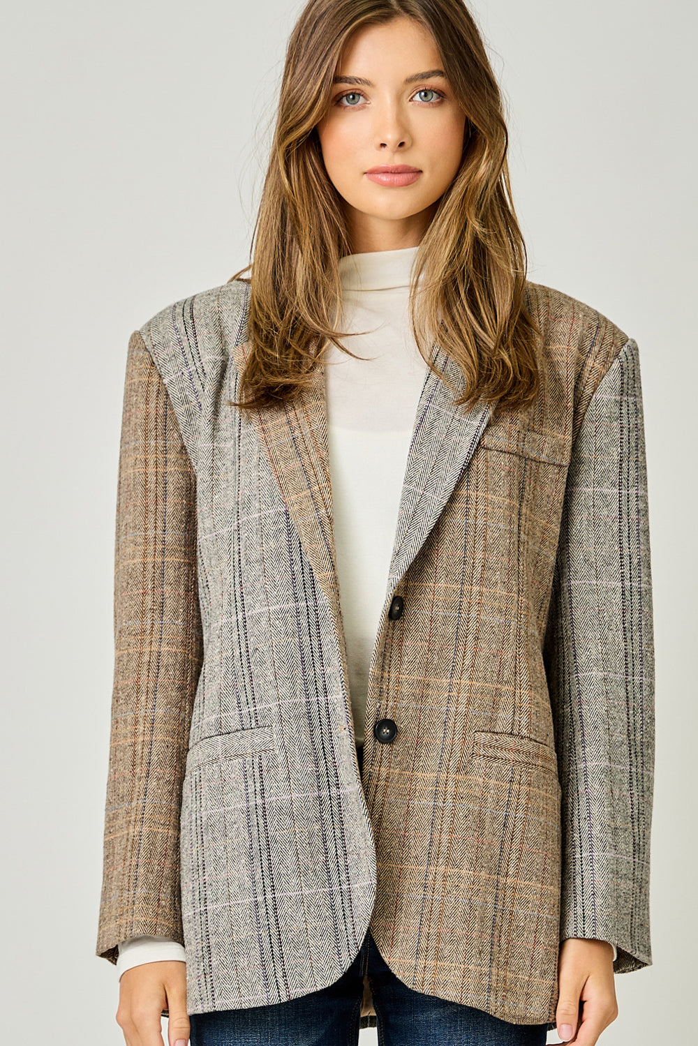 *FINAL SALE* Mixed Media Button Front Plaid Jacket