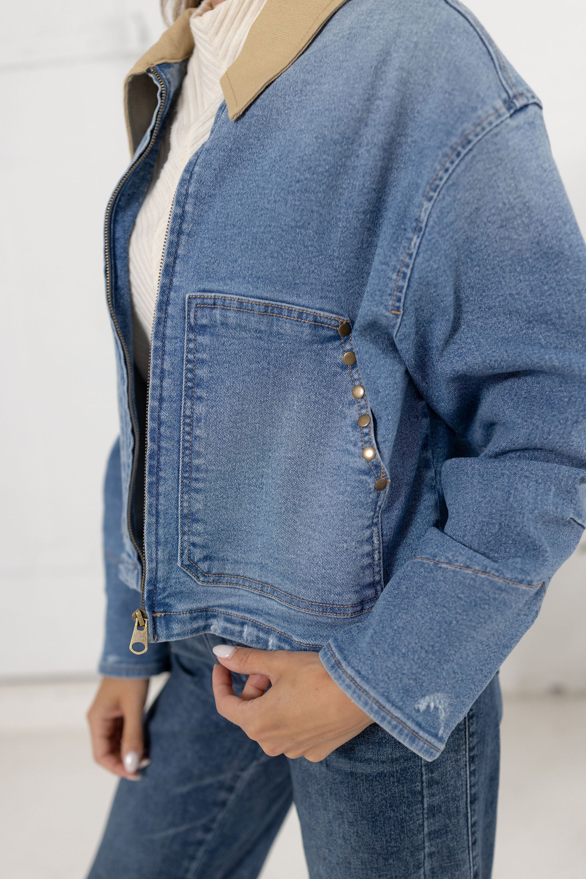 *FINAL SALE* Metallic Washed Zip Up Denim Jacket