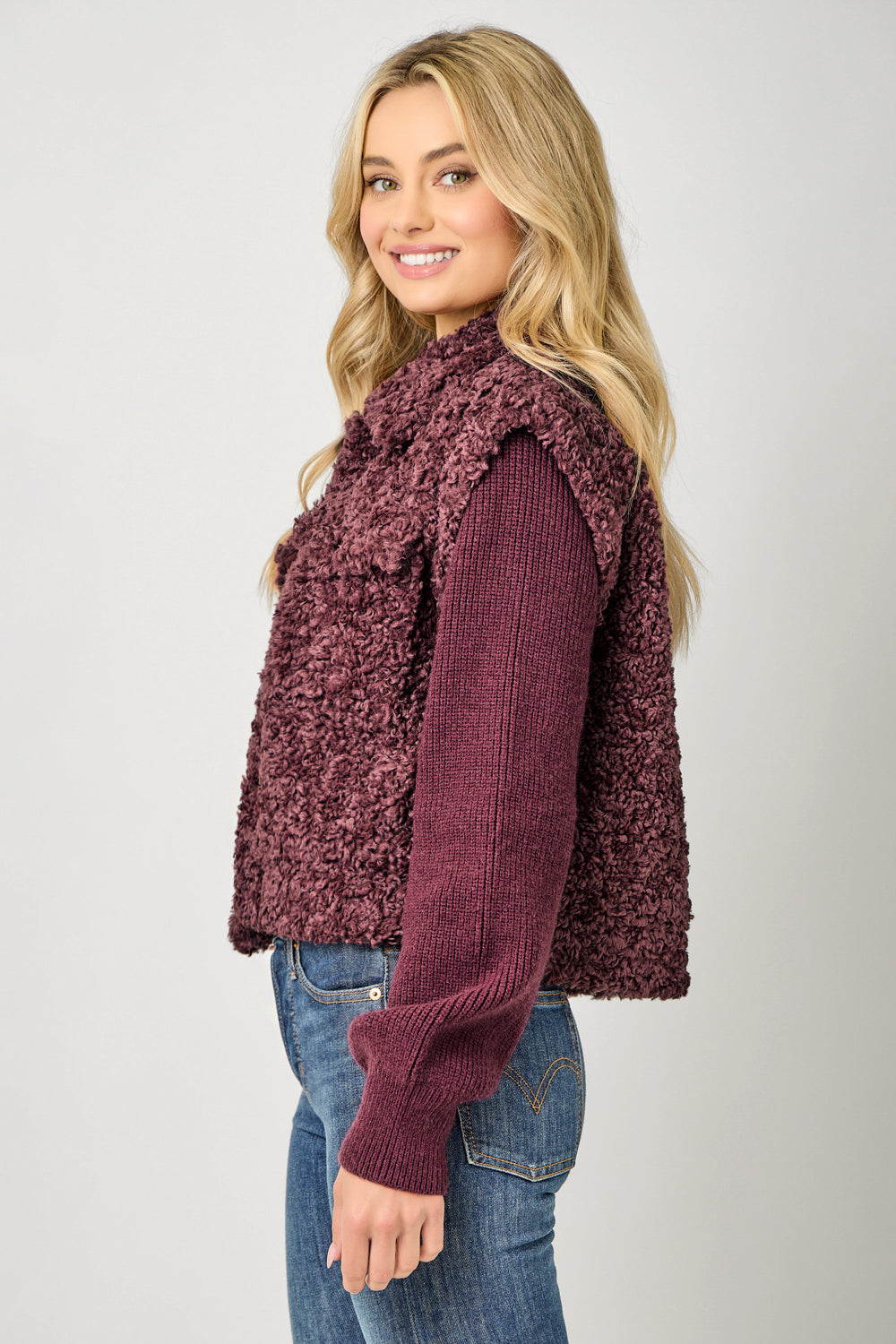 Mixed Media Snap Front Jacket with Bubble Sleeves