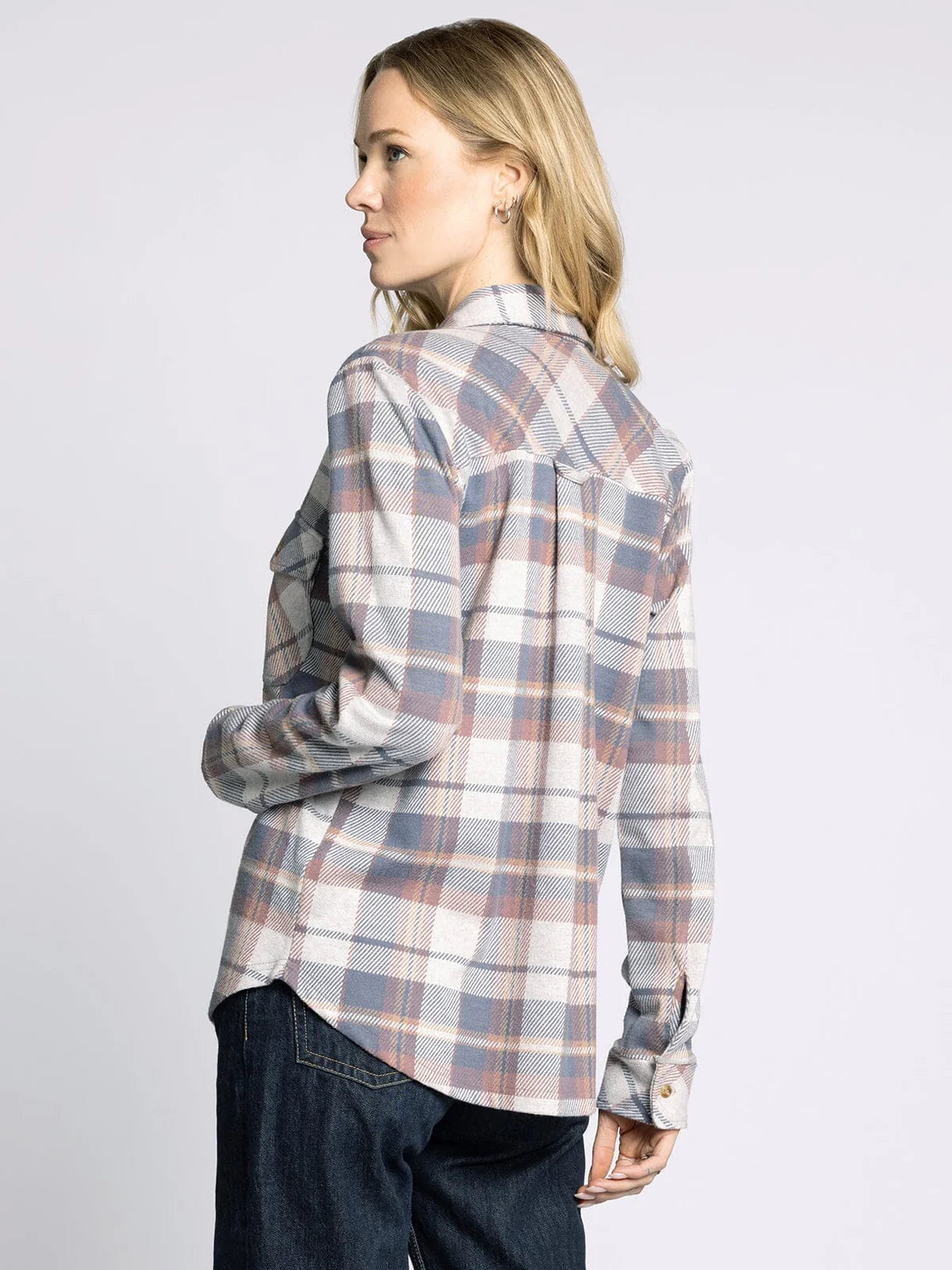 Stay comfortable and stylish in this cozy soft button-down top. Crafted from a plush, lightweight fabric, it offers an easy, relaxed fit. Perfect for layering or wearing on its own for effortless everyday style.