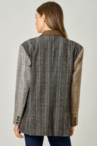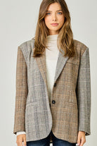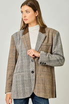 Elevate your outerwear with the Freckled Herringbone Oversized Jacket, featuring a classic plaid pattern and a sleek faux leather collar. Designed with a two-button closure, long sleeves with buttoned cuffs, and functional chest and front pockets. The two back slits add movement and polish to this timeless, oversized silhouette.