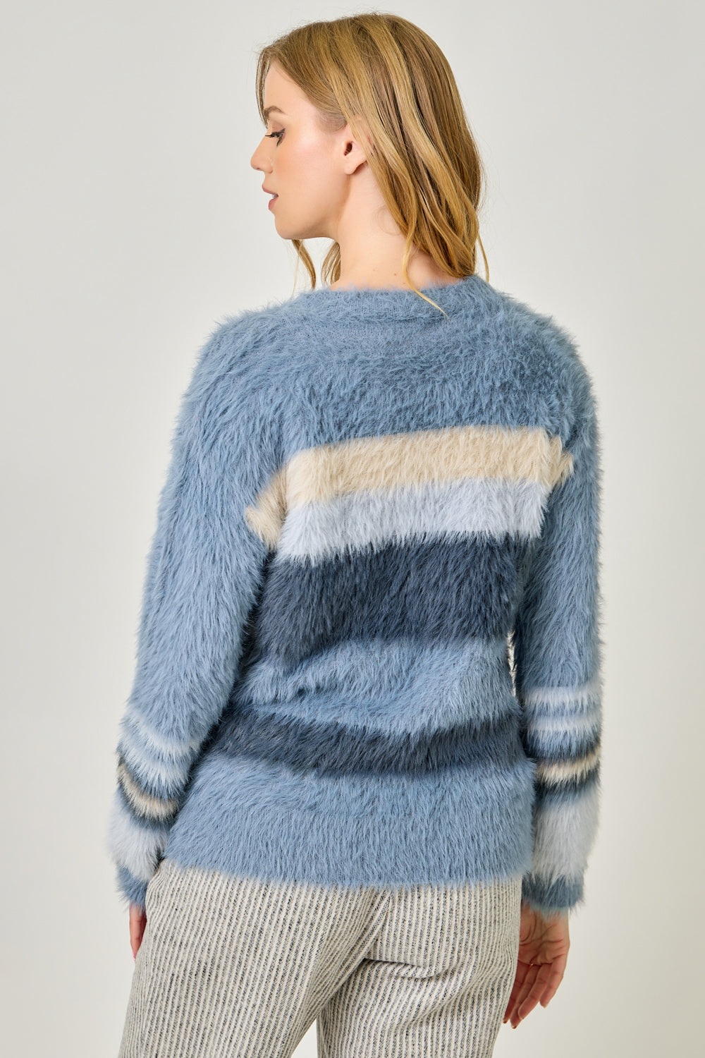 Stay cozy and stylish in this sweater, featuring a soft, plush texture and bold color-block design. The classic crew neck and long sleeves offer timeless comfort. Designed with a loose fit for effortless layering and a relaxed, casual look.