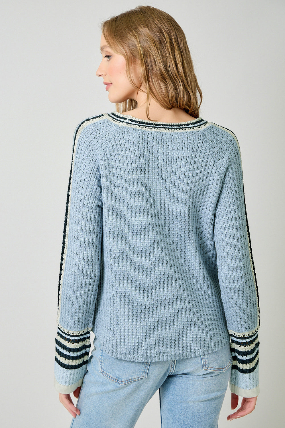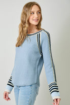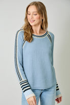 Stay cozy and sporty in this Raglan Sleeve Trim Detail Sweater Top, featuring a classic round neck and contrast stripe accents on the sleeves. The hi-lo hem adds a flattering touch and relaxed silhouette. Perfect for pairing with jeans or leggings for an effortlessly casual look.