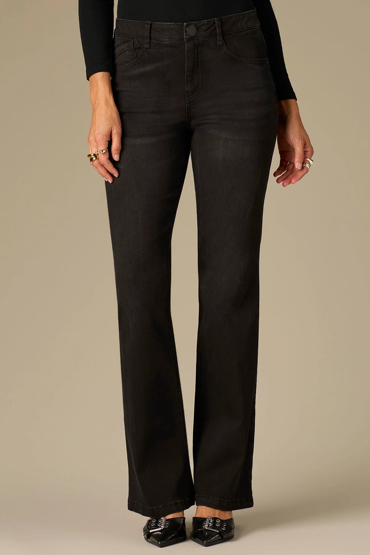 The washed black Madison Bitty Boot jean is a wider leg opening than our Itty Bitty Boot. Made with Contour Shape Technology for a tailor-made, flawless fit and thoughtful design details.