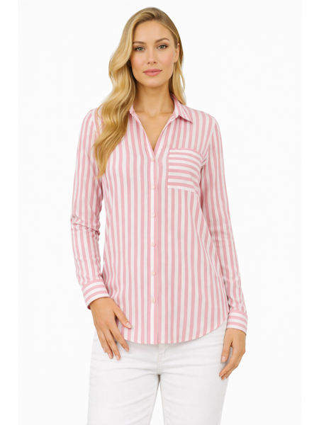 Classic and effortlessly polished, the Striped Long Sleeve Button Down Top is a timeless addition to any wardrobe. Designed with a crisp button-front closure and allover stripes, it offers a refined look that transitions seamlessly from workdays to weekends. Pair it with denim for a relaxed feel or tuck it into tailored pants for a more elevated style.