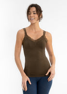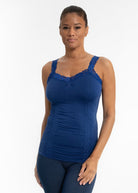 Our lace corset cami is created with delicacy in mind. Easy to wear under your low cut garments for a peak of detail, layer under your favorite blazer for the office, or simply by itself. The ruching fabric down the sides creates a slimming silhouette while adding beautiful texture.