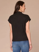 Extended Cap Sleeve Mock Neck Curved Placket Knit Top