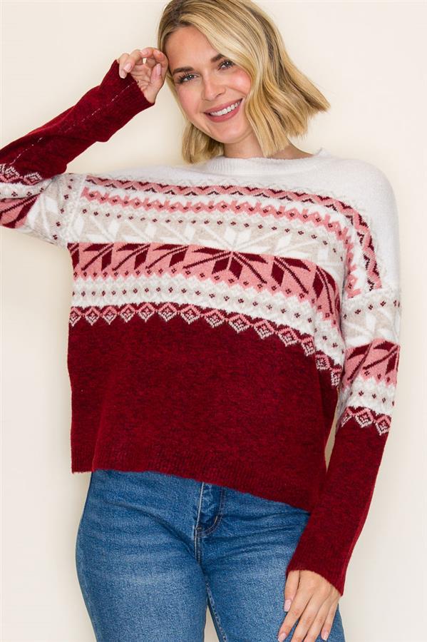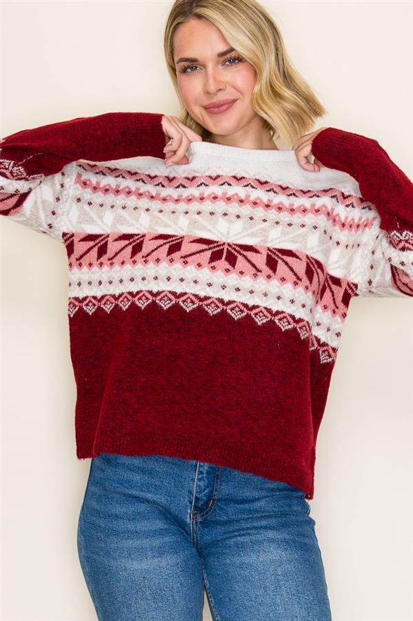 Fair Isle Snowflake Cozy Pullover Sweater