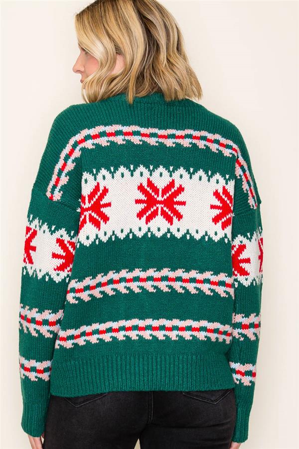 Festive Fair Isle Snowflake Knit Sweater
