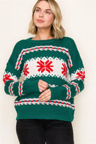 This festive crew neck sweater is the perfect choice for your holiday wardrobe, featuring a vibrant Fair Isle pattern with bold snowflakes and geometric details. Crafted from a cozy and soft knit, it provides comfortable warmth for all your winter celebrations. Pair this pullover with your favorite jeans for a cheerful and stylish look that's ready for any seasonal gathering.