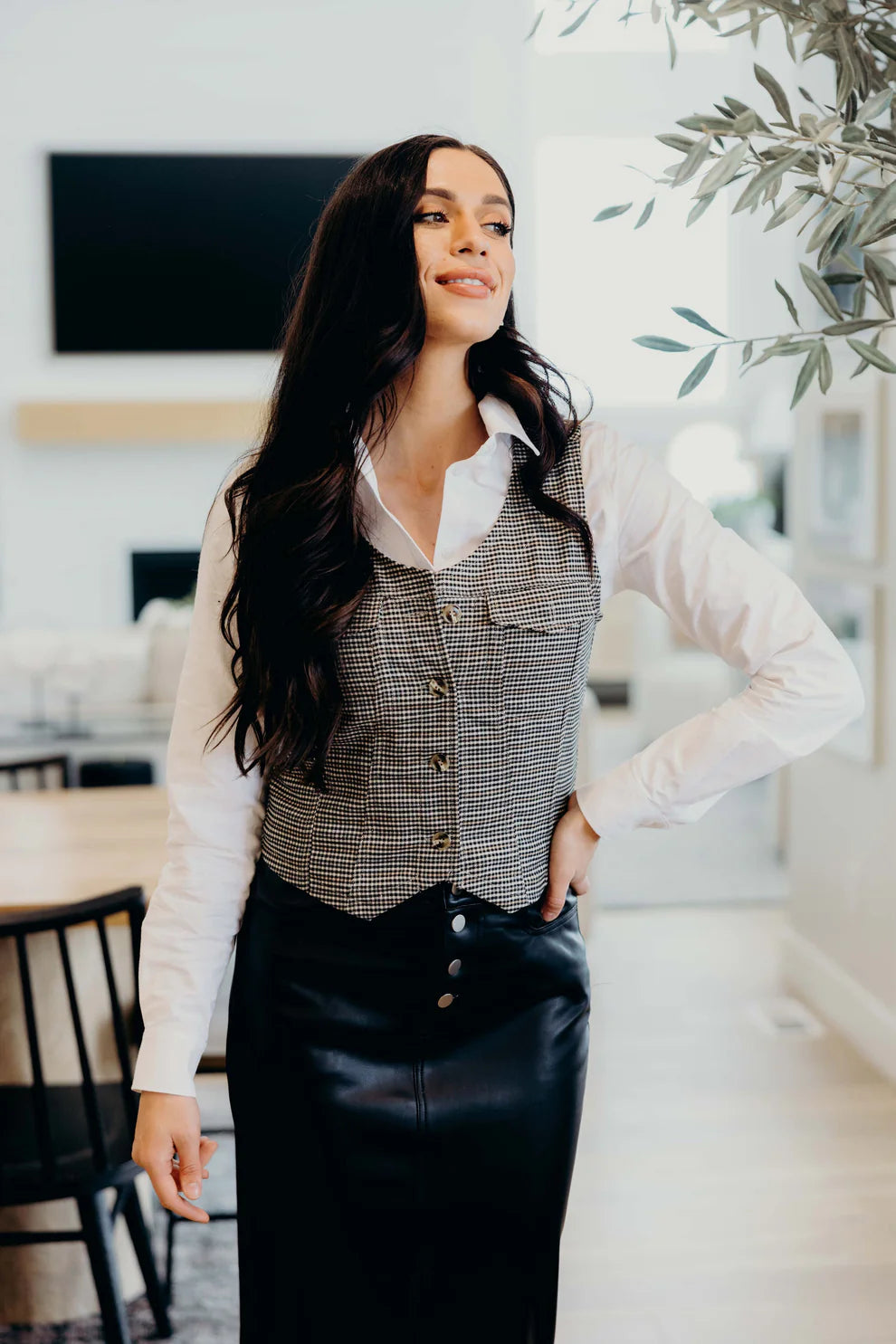 *FINAL SALE* Fitted Houndstooth Button Front Vest