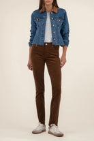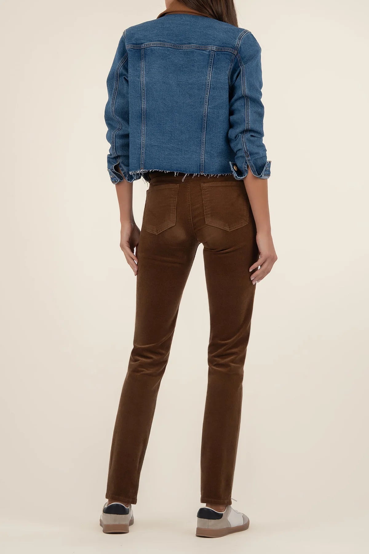 Kerry Denim Jacket with Raw Hem and Suede Collar