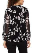 Liverpool Floral Popover Blouse with Front Ties and Sheer Sleeves
