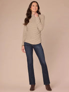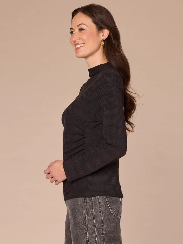 Long Sleeve Mock Neck Asymmetrical Side Ruching Knit Top