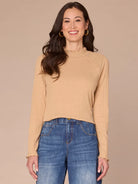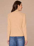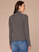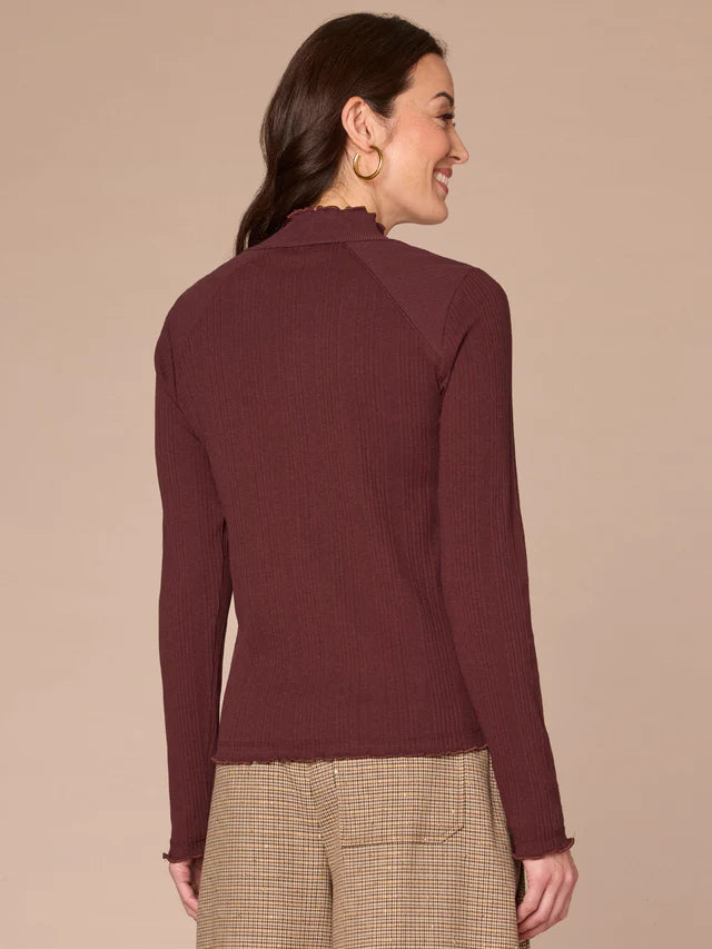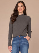 Long Sleeve Mock Neck Mixed Media Knit Top with Lettuce Edge Detail
