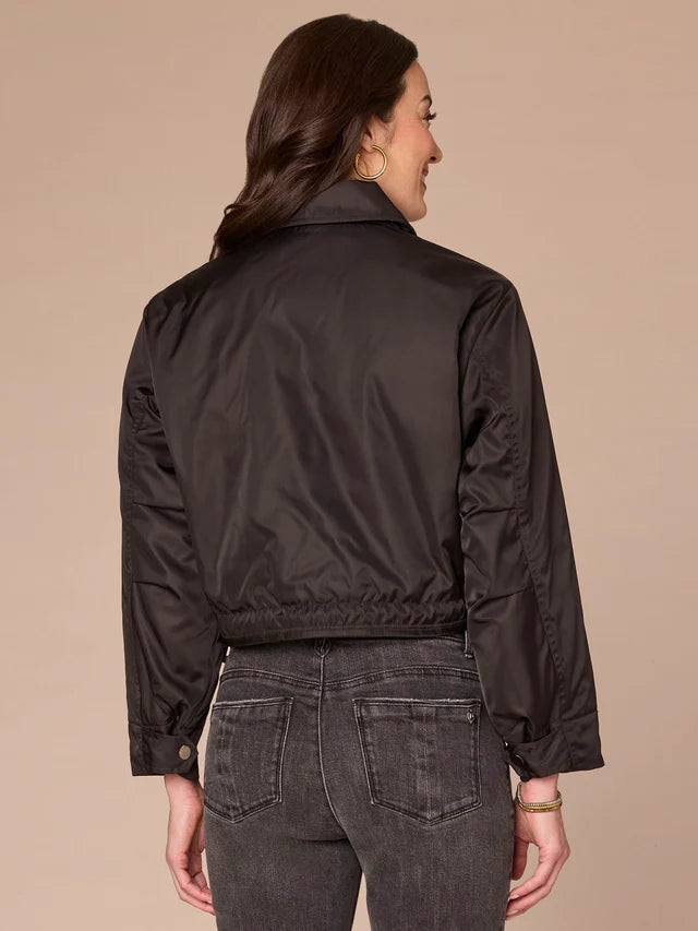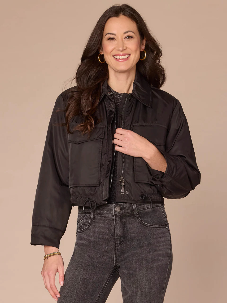 Slick, polished, and modern, this two-in-one jacket brings a cool girl vibe with its collar, button front, oversized patch pockets, and cropped hem with ties. Reverse it for a whole new look.