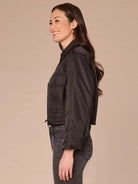Long Sleeve Oversized Patch Pocket Cropped Reversible Woven Jacket