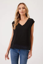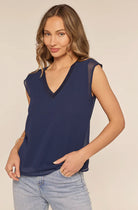 *FINAL SALE* Made in USA V-Neck Tank with Sheer Overlay