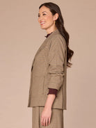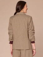 Ruched Sleeve Single Button Woven Blazer with Princess Seaming Pockets