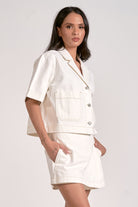 This versatile and stylish short-sleeve collared denim top is a timeless wardrobe staple, perfect for creating effortlessly cool and casual outfits. Made from comfortable, high-quality denim, this button-front shirt offers a relaxed yet polished look for any season.