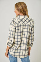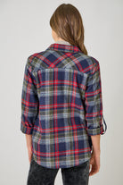 This snap front plaid long shirt jacket offers a perfect blend of classic pattern and functional design. Its relaxed fit and snap closures make layering effortless and stylish. Ideal for transitional weather, it pairs easily with jeans or leggings for a laid-back look.