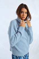 Experience cozy luxury in this oversized knit sweater, designed with a high turtleneck and long sleeves for maximum warmth and comfort. Its relaxed, straight fit is complemented by low armholes, creating a modern, slouchy silhouette perfect for effortless layering. A cold-weather essential, this pullover combines a plush feel with a stylishly relaxed drape for a look that is both elevated and comfortable.