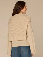 Long Sleeve Round Neck Twofer Tie Front Pointelle Sweater