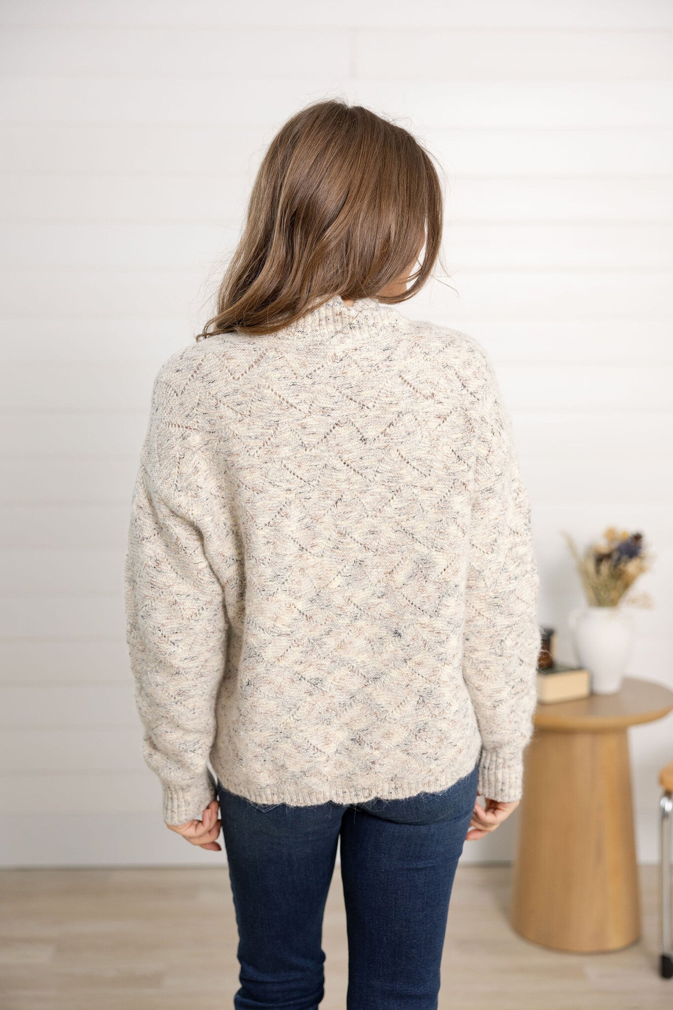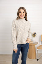 MB Mock Neck Textured Puff Sleeve High Low Sweater