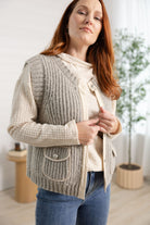 MB Sleeveless Sweater Snap Front Vest with Pocket Detail