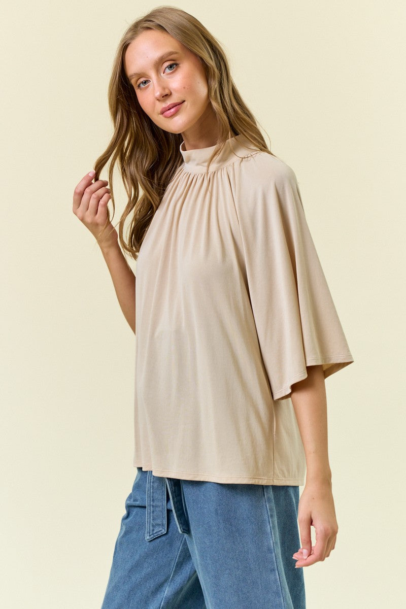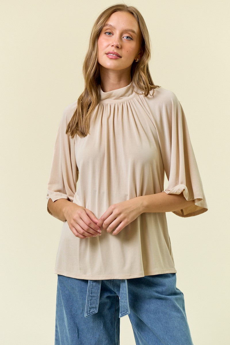 Modal Jersey Mock Neck Fluted Sleeve Top