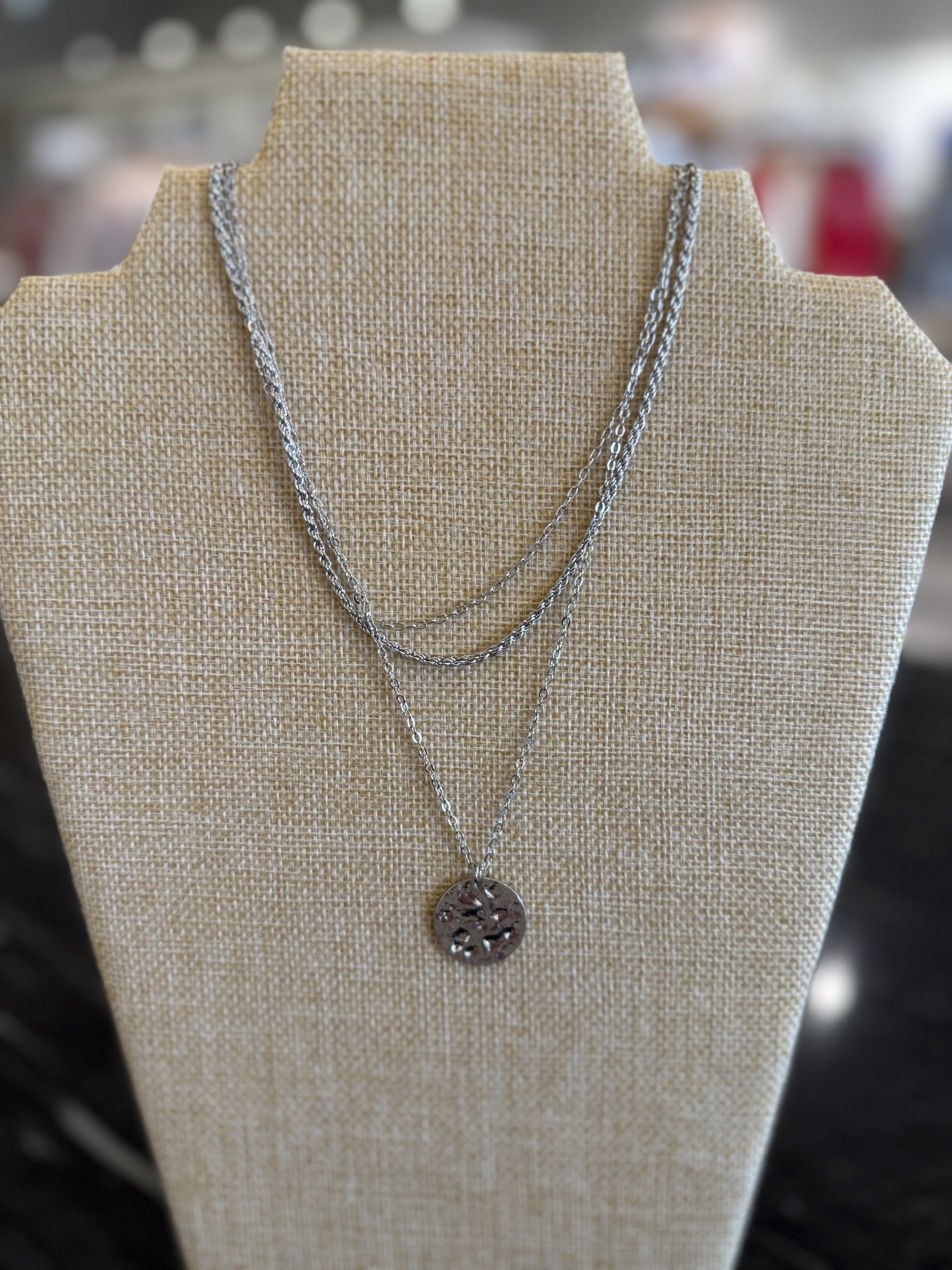 Effortlessly stylish, this multi-layer necklace features delicate chains in varying lengths, creating a chic layered look without the hassle. The focal point is a sleek circle pendant that adds a modern, minimalist touch. Perfect for dressing up a casual outfit or adding a little shine to your evening look.